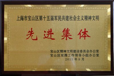 8月14日,我院荣获上海市宝山区精神文明建设委员会办公室、双拥工作领导小组办公室授予的“上海市宝山区军民共建社会主义精神文明先进集体”荣誉称号。