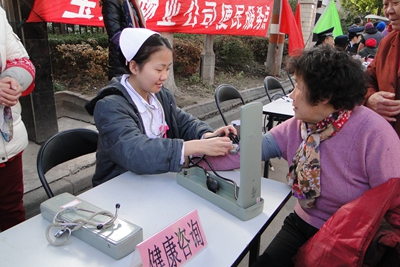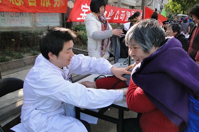 3月5日,医院团委组织青年志愿者积极参与了上海企业团工委组织的中冶青年“学雷锋”活动。他们远赴金山区的白漾村,为留守老年村民们提供免费的诊疗咨询和保健指导,还免费为村民们测量血压和血糖。在村民活动中心的现场,前来问诊和检查的村民络绎不绝。外科护士王莹一丝不苟地为老人们测血糖;康复门诊医生朱俊玮为肩背疼痛的老人进行推拿、按摩等治疗;内科医生刘帅为老人们量血压,讲解高血压的防治知识;儿科医生黄珠珠和外科医生沈钧华运用自己的专业知识为村民们答疑解惑。由于村里老人们普通话普及程度不高,志愿者们不厌其烦地一遍一遍向他们解释,尽最大的努力让他们清楚明白。志愿者们在检查过程中发现,由于长期进行体力劳动,平素饮食中盐类成分摄入较多,村民们的血压普遍高于正常值,而且均未曾接受检查及正规治疗。志愿者们及时将这种情况反馈给村委会并对后期的诊治提出建议。此次志愿活动共有50余名村民前来寻医问诊,测量血压和血糖各为100多人次,青年志愿者们以自己的实际行动传承了雷锋精神,受到了老人们的一致认可与好评,临行时,多位老人表示感谢并提出将重视今后的身体健康检查。