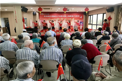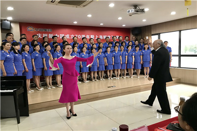 为庆祝新中国成立70周年暨上海解放70周年,5月15日,上海华谊集团公司合唱艺术团演职人员一行近70人来到中冶医院蕰川路分院,为老干部们献上了一场“唱响经典红歌、传递精神力量”的专场慰问演出。蕰川路分院在院离休老干部、医护人员及华谊集团工作人员200余人参加活动。