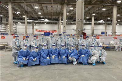 目前,整个舱内收治患者已过半,队员们努力适应方舱工作节奏,各组长不断思考优化工作流程,尝试中医等辅助治疗方案。6个小时一班,交接班加来回路程,队员基本需要8.5小时才能回到酒店休息。进舱起,气温攀升,穿着防护服的他们一天走几万步,两腿发软、汗流浃背是常态,几百上千号人采核酸,单人单管、两鼻一咽,工作量非常大,护士们都累虚脱了,甚至有人已经出现中暑现象。但面对接下来满员运行的工作挑战,面对大量的确诊病例,医疗队队员依然斗志昂扬:莫问前程几许,只顾风雨兼程,我们不怕吃苦,不怕劳累,汗水湿透总会干,黑暗过后终将明,只愿早日实现社会面清零,恢复昔日繁华。
