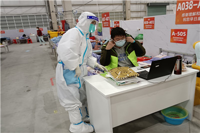 4月11日,方舱工作办公室装好了局域无线网,大家把这个好消息也带给了小林,征询他的意见,要不要搬到医生护士的办公室旁边桌子上共享网络学习?小林选择了在自己床位边学习,因为这里的环境他比较熟悉。小林咽部不适,值班的李哲和杨世科医生迅速给予对症治疗和心理疏导。