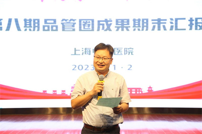 张建国宣读《关于举办第八期品管圈成果汇报会的通知》。他对护理系统开展的品管圈活动给予高度肯定,称赞品管圈富有创新性、科学性,改善内容涉及护理工作的方方面面,推动品管圈活动在医院广泛应用,是加强护理内涵建设的重要举措。护理系统自2016年开展品管圈活动以来,在改善护理质量方面硕果累累。他同时对品管圈活动提出要求,希望全面质量改善活动作为医院战略解码重点内容,要贴合环球医疗“环境舒适、服务一流、技术过硬、运营高效”管理理念,持续提升医疗护理质量,把品管圈作为抓手,营造全面、全员质量提升氛围,助推医院高质量发展。