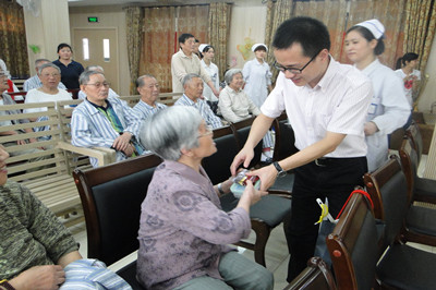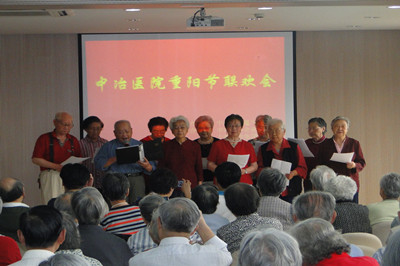 首先,中冶医院党委书记刘剑平代表医院党政工领导和全体医护人员向老人们致以节日的问候,感谢老人们为祖国的发展做出的贡献,并表示希望老人们在这安心住院,医院将竭诚为老人们做好服务,让他们在这里安享幸福舒适的晚年生活。中冶上海企业团工委书记王靖涛也向老人们送上了祝福,衷心祝愿他们生活愉快,健康长寿。随后,老人们献上了他们自编自演的文艺节目,有住院的老人们自发组织的红歌队的表演唱,还有对唱、独唱、京剧表演、诗朗诵等精彩的节目,其中有位老人自编自演山东快书,以表达对医务人员的感激之情。虽然这些老人已过不惑之年,但在自己的节日里却像孩童一般的高兴,歌声和舞姿也依然那么动听和优美,他们的表演得到了大家热烈的掌声和欢呼声。看到老人们精彩的表演,刘剑平书记和分院的徐伟健院长也上台为老人们演唱了一曲《莫斯科郊外的晚上》,兄弟单位的团员代表也为老人们献上了歌曲《绒花》、《母亲》,表达了在沪企业广大团员青年对全院离退休老干部的节日祝福!